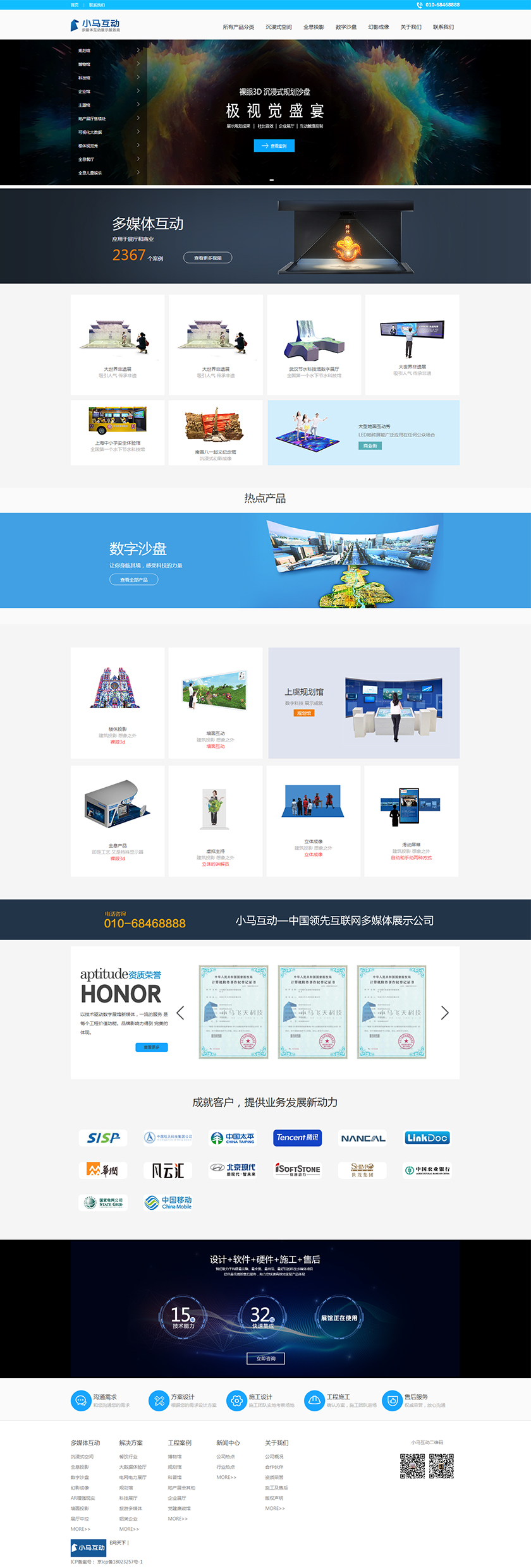 Project Description 小马科技成立于2004年,致力于开发虚拟仿真、增强现实、交互式体验、互动传感控制等多方面互动展示技术应用。拥有多项达到国际领先水平的创新型技术和标准化产品,可为客户提供项目策划、整体设计、硬件集成、核心技术研发、定制加工、安装调试、售后维护升级等一站式服务。 Official website address 吕梁www.dmtzg.com I want to share